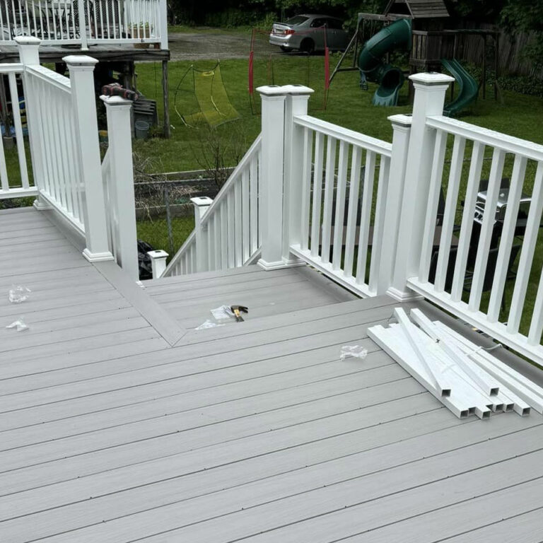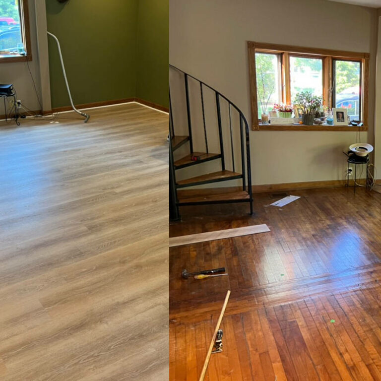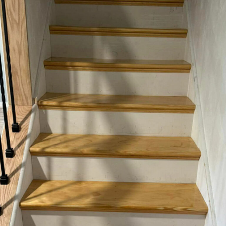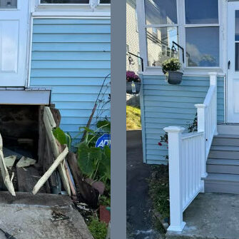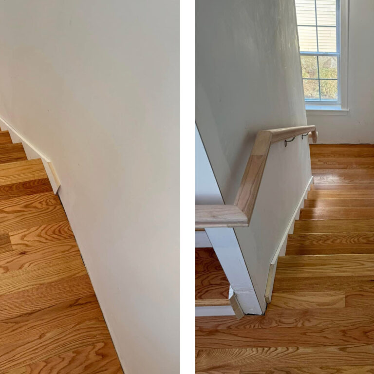 Before and after staircase vinyl installation finished in Whitinsville MA