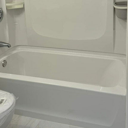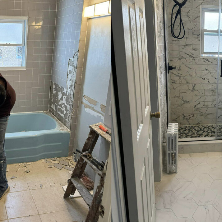 Before and After finished the bathroom! The images of us working on a bathroom for a family!