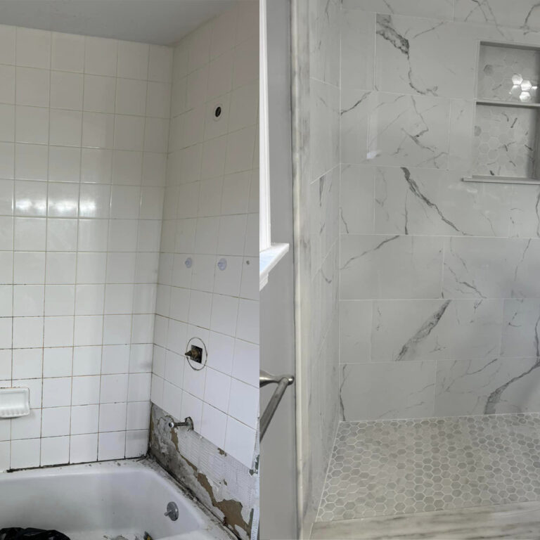 We removed the old vanity wall & added a luxurious walk-in tile shower in it’s place Ready for your bathroom remodel? Let’s make it happen- Get a FREE quote: