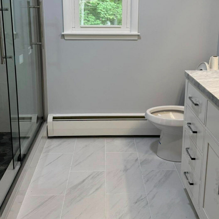 A bathroom completed by Mrt Flooring in Holden MA, Bathroom Remodel Unlocked! This bathroom got a whole new identity!