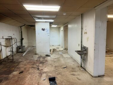 Kitchen renovation phase. Kitchen cabinets have been removed, new tiles and flooring installed.August 16, 2025