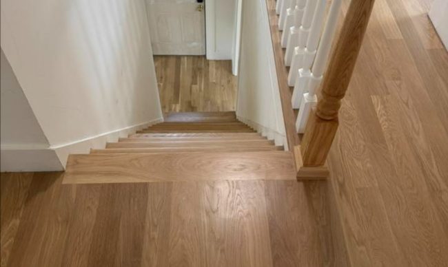 A newly completed house with 2 bathrooms, wood floors, kitchen, and a fresh coat of paint