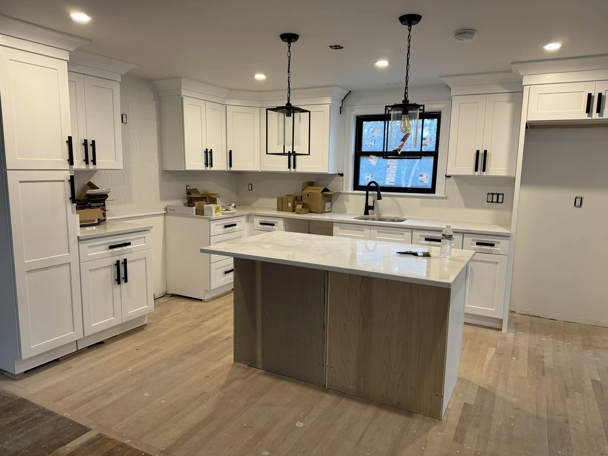 Kitchen renovation phase. Kitchen cabinets have been removed, new tiles and flooring installed.August 16, 2025